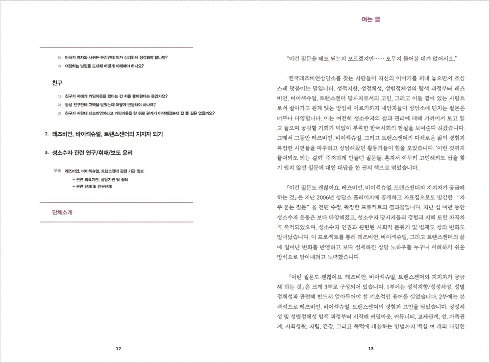 레인보우굿즈전 한국레즈비언상담소 도서3종