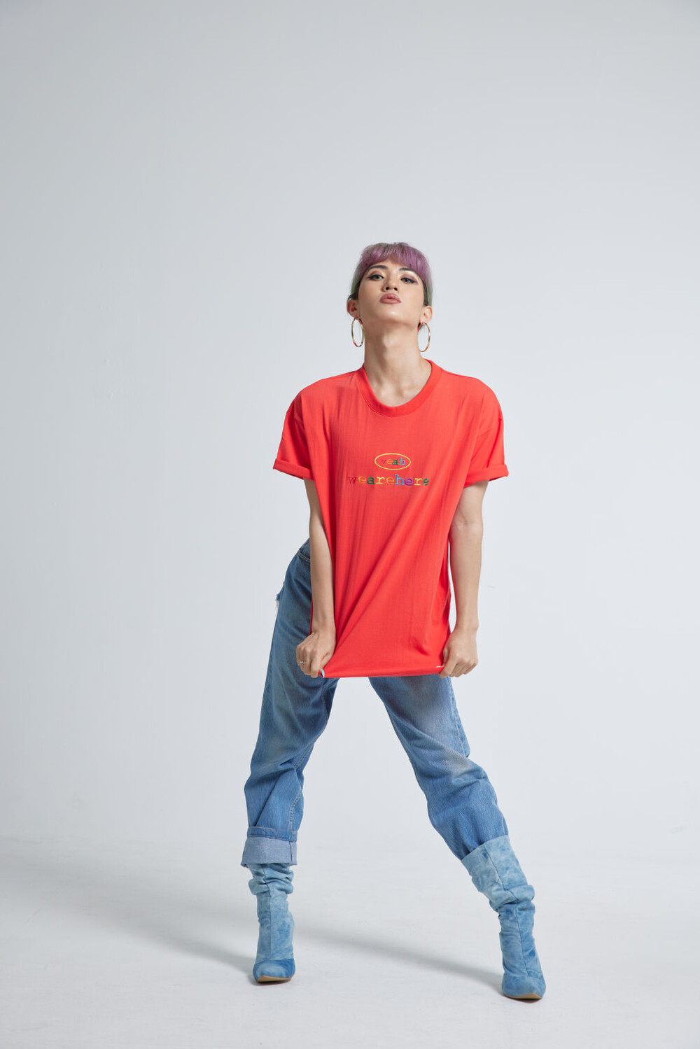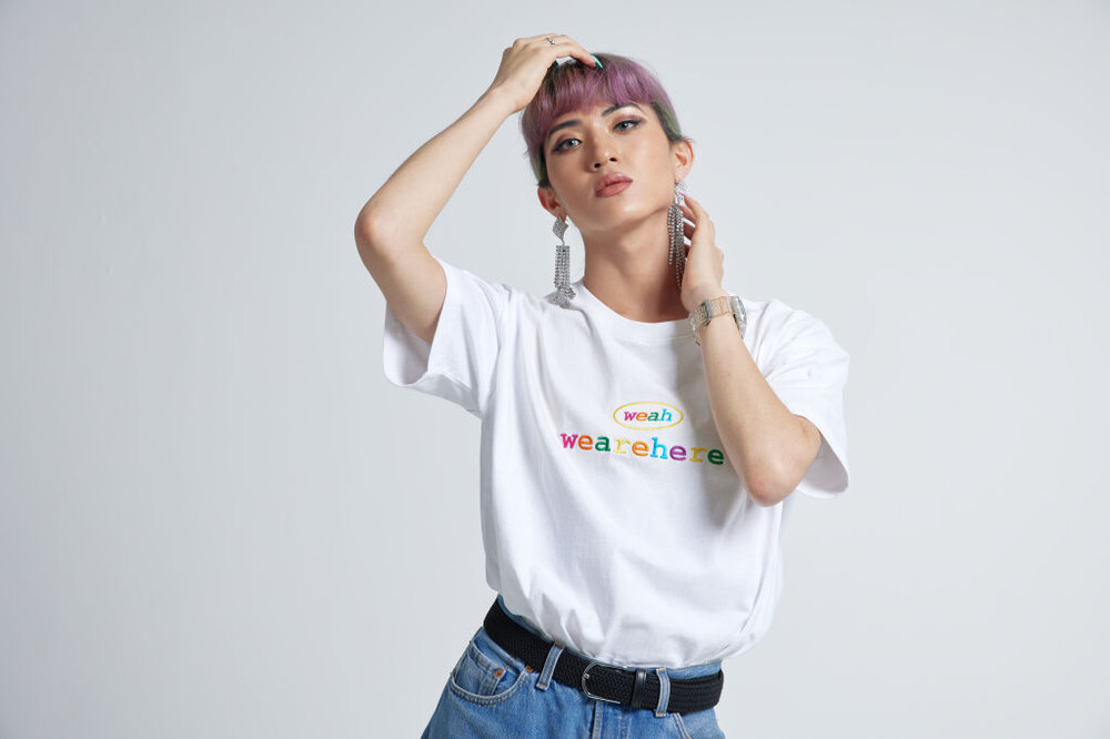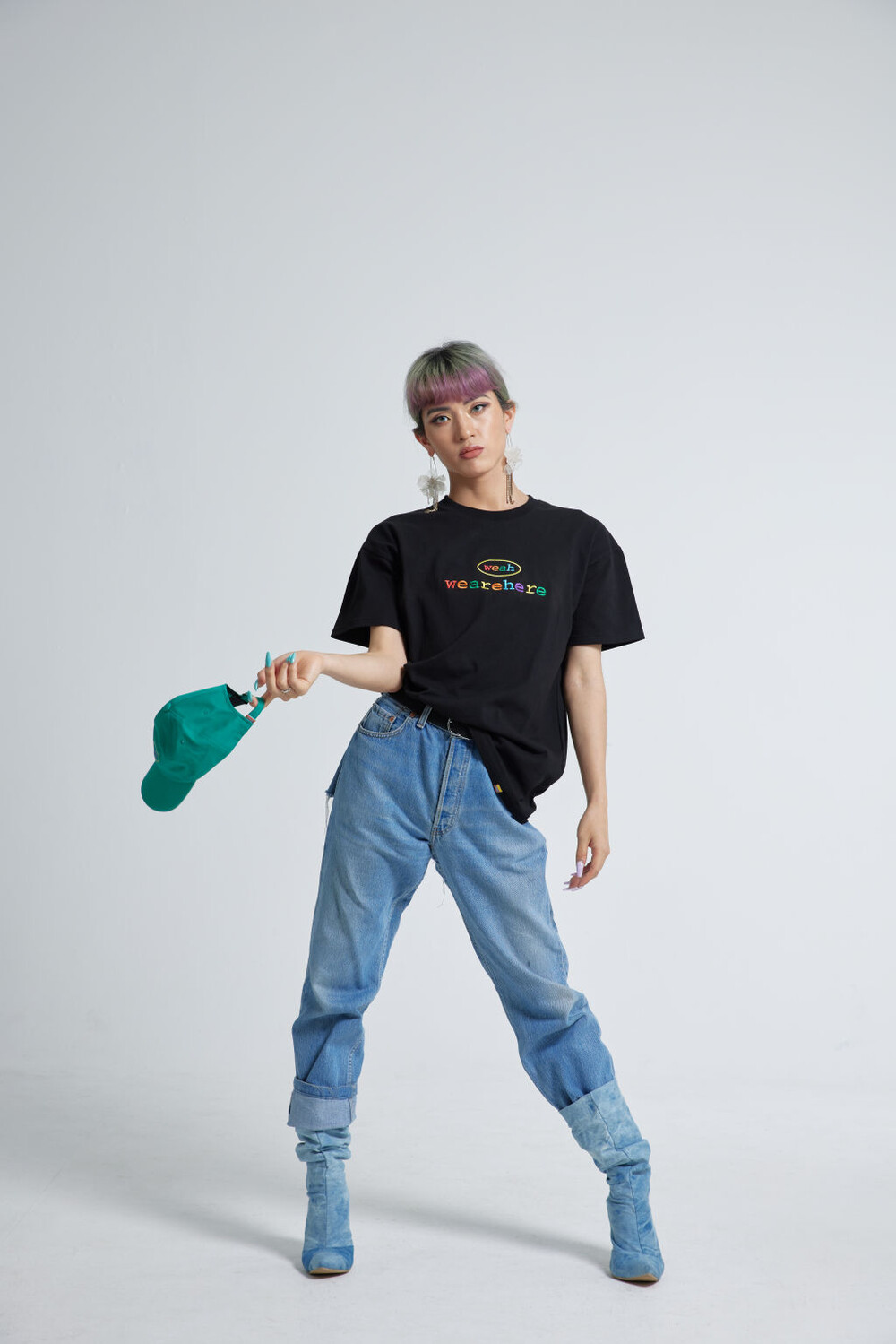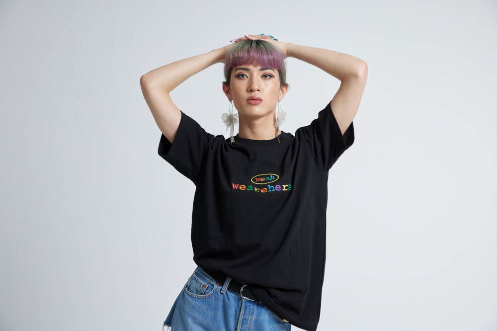 우리는 여기에 있고, 어디에나 있습니다. weah와 wearehere의 문구가 레인보우자수형태로 들어가 레트로한 무드를 연출할 수 있는 티셔츠입니다. 화이트/블랙/오렌지 세가지 타입 / 사이즈는 2, 3 두가지 타입으로 출시되었습니다.