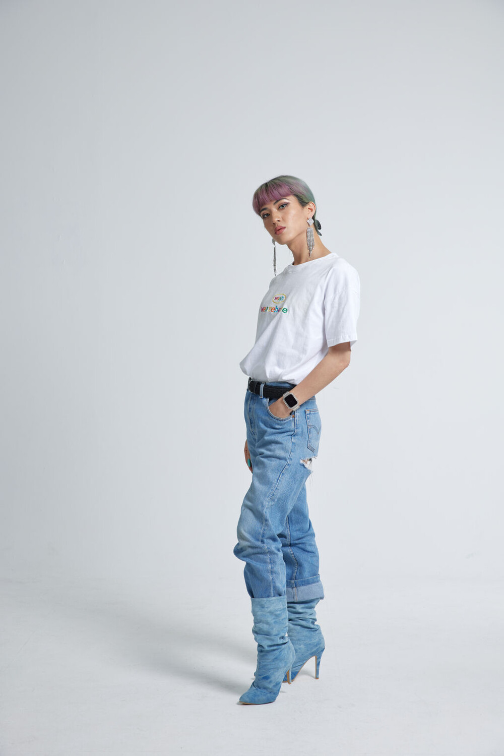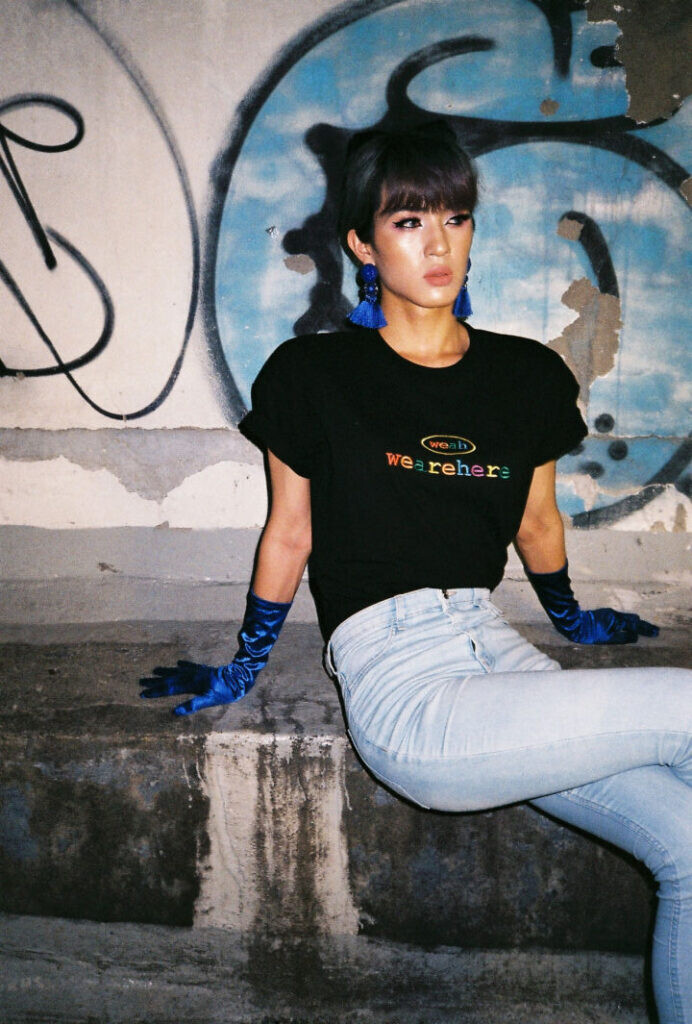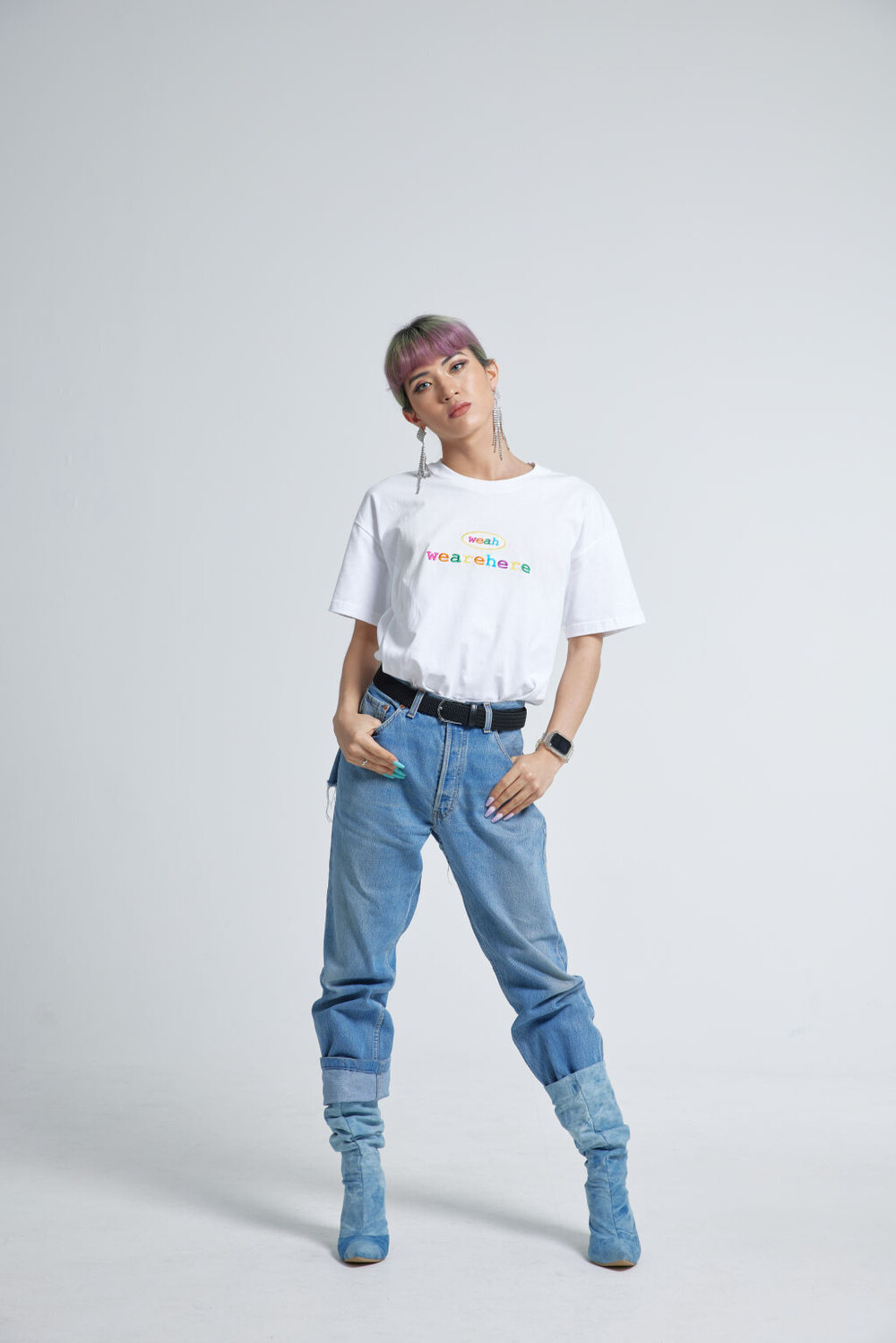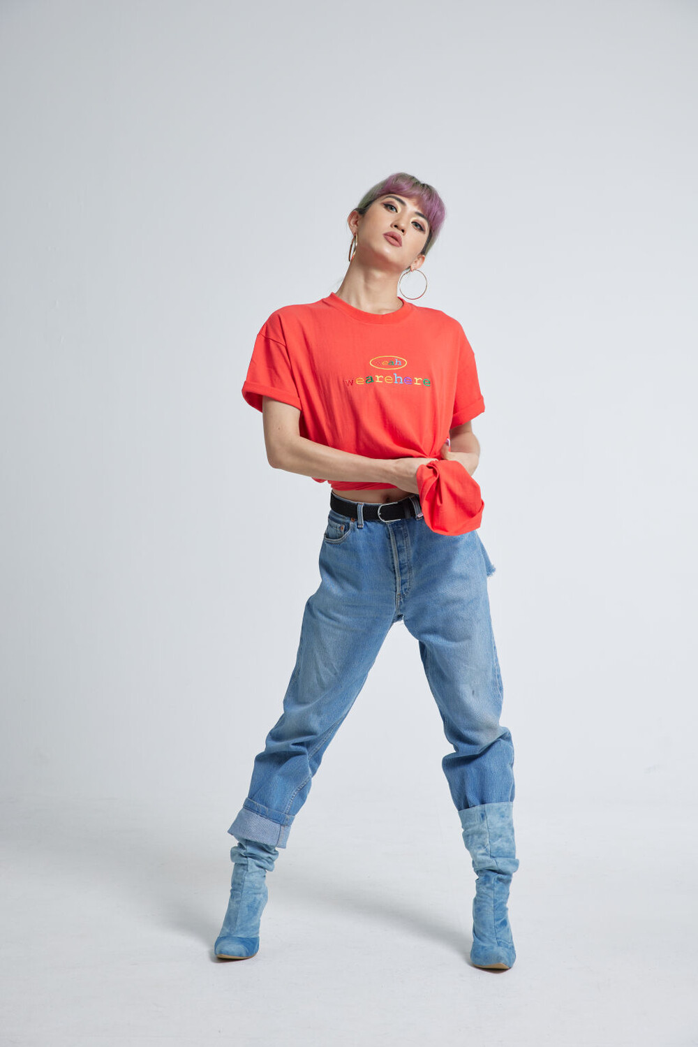 우리는 여기에 있고, 어디에나 있습니다. weah와 wearehere의 문구가 레인보우자수형태로 들어가 레트로한 무드를 연출할 수 있는 티셔츠입니다. 화이트/블랙/오렌지 세가지 타입 / 사이즈는 2, 3 두가지 타입으로 출시되었습니다.