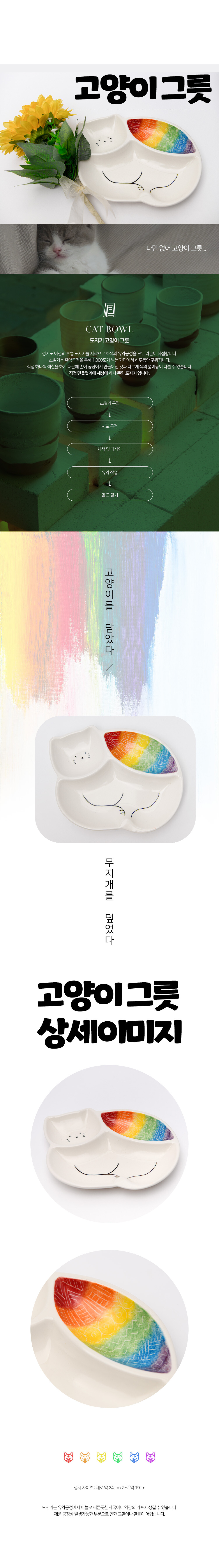 [라온] 무지개 고양이 도자기 그릇