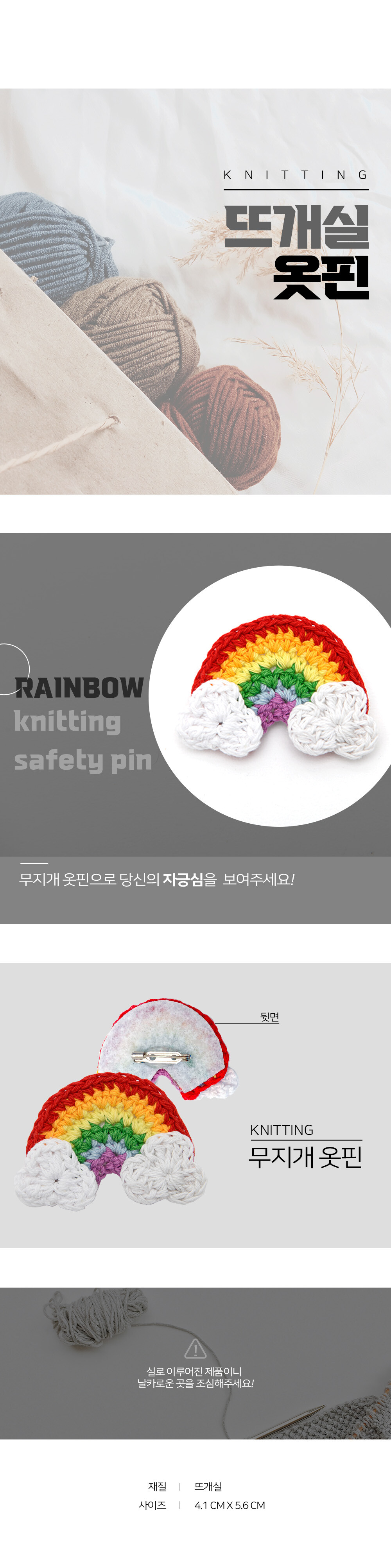 [라온] 무지개 뜨개실 옷핀