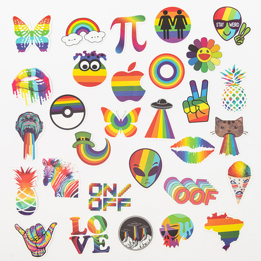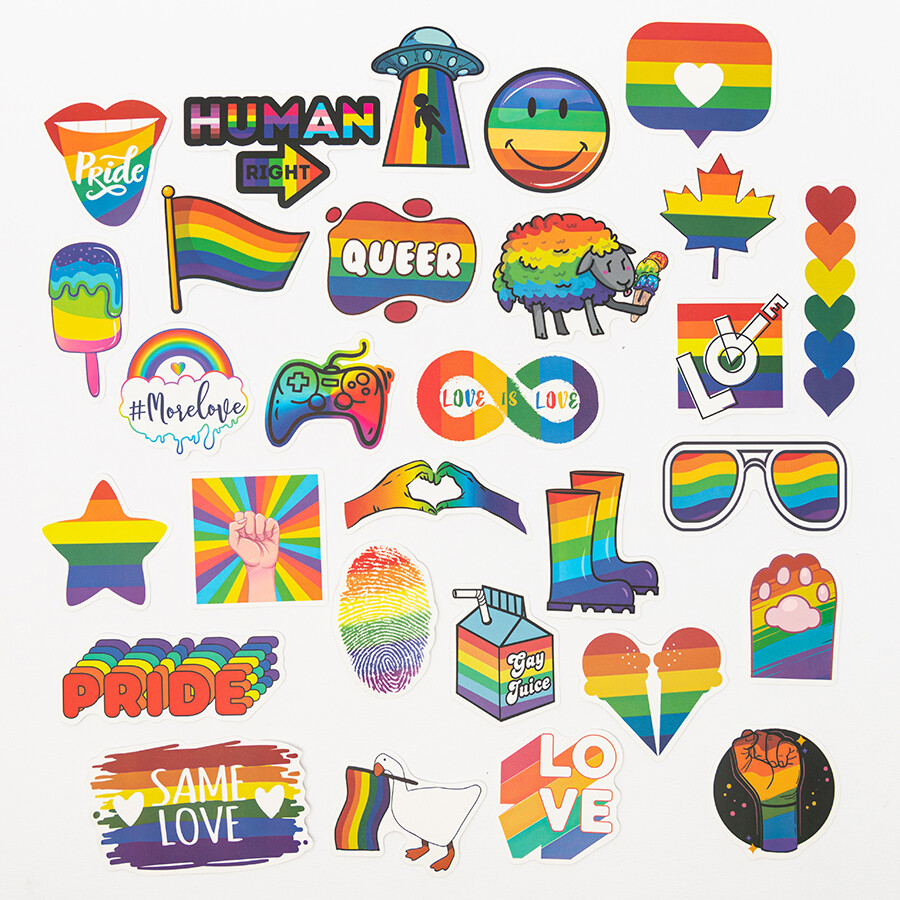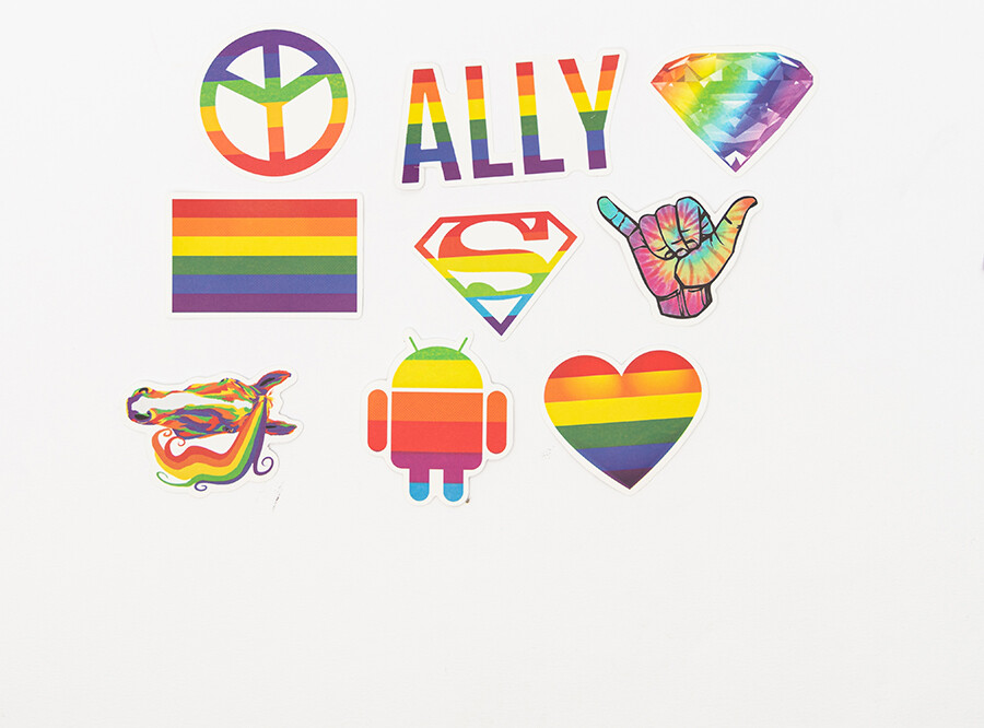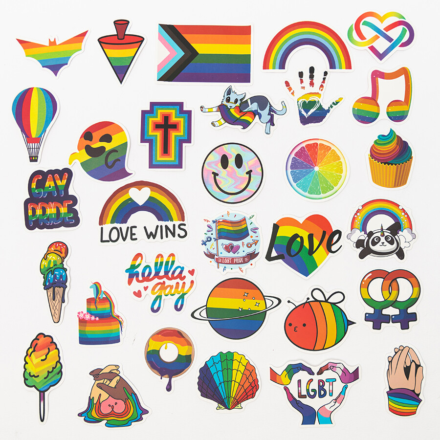 다양한 디자인의 무지개 색 프라이드 랜덤 스티커입니다.