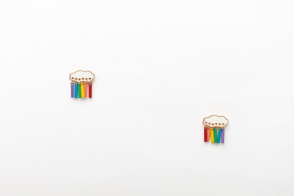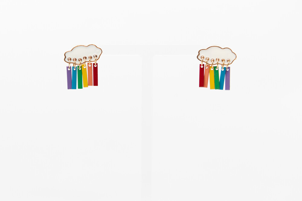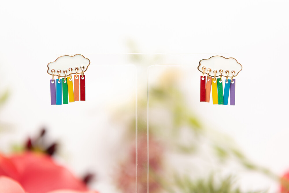 몽글몽글 구름 아래 무지개 빗줄기가 매달린 귀걸이에요.
