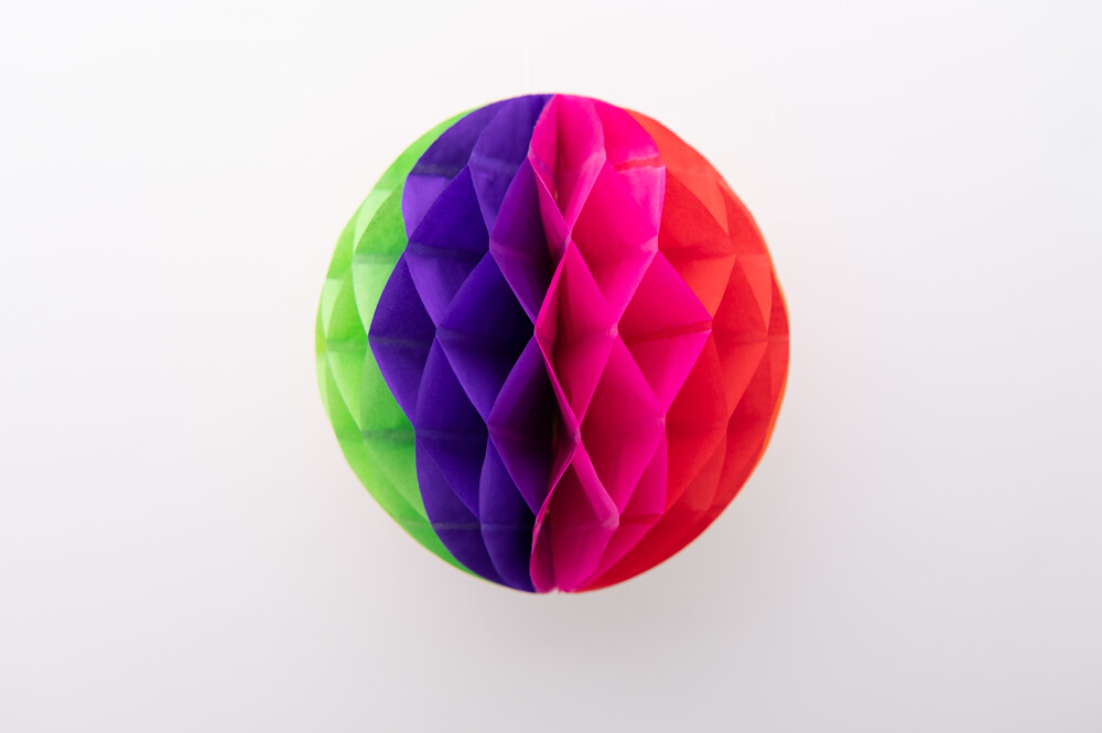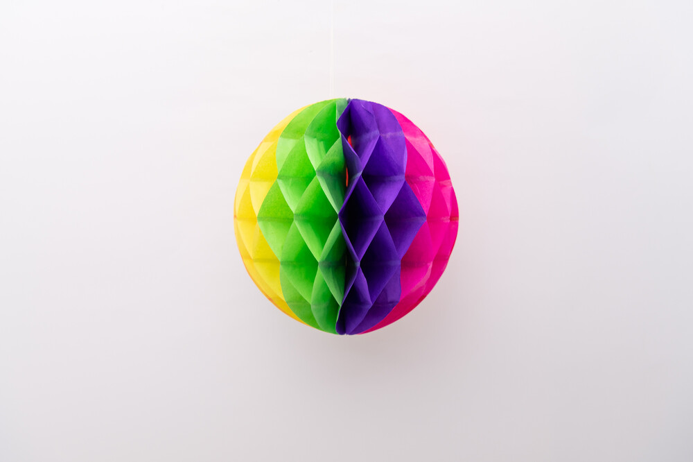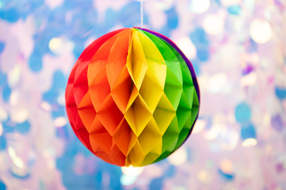 6색 무지개와 핫핑크색이 들어간 종이 장식이에요!