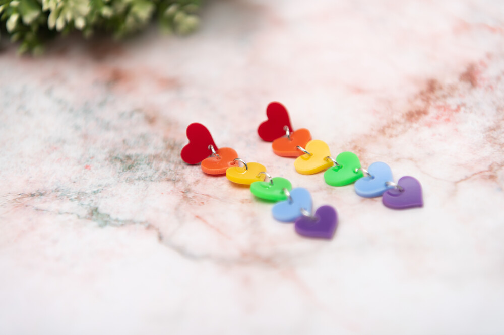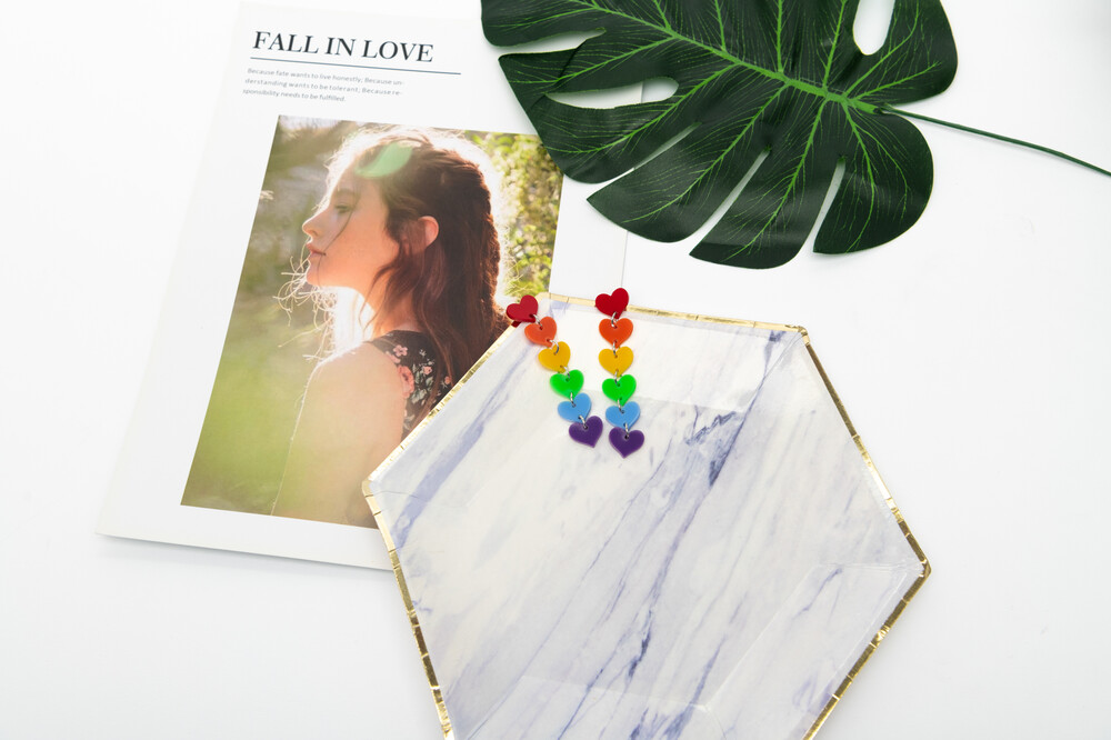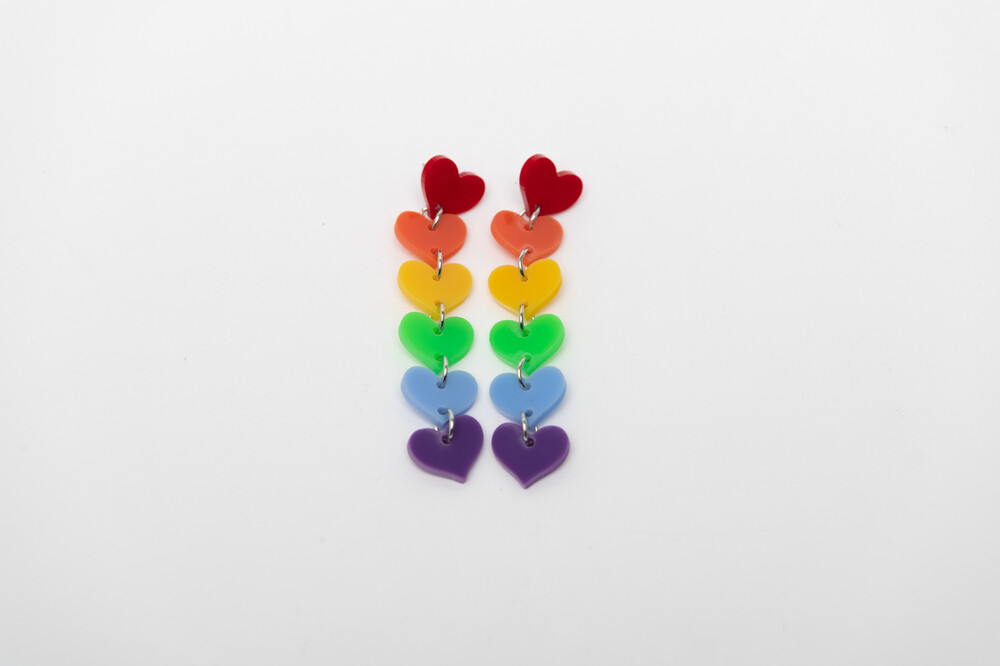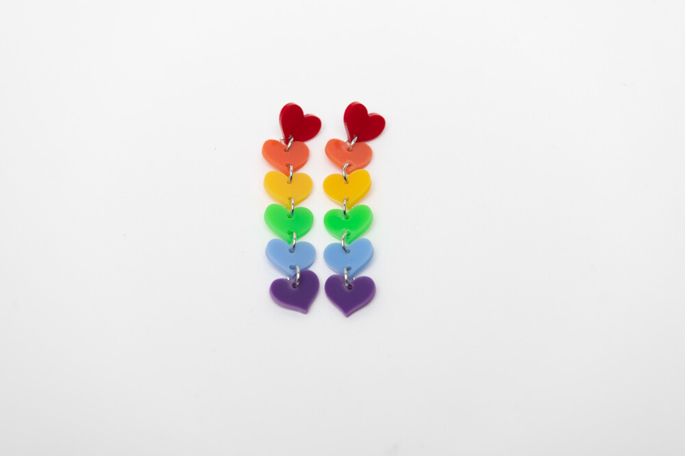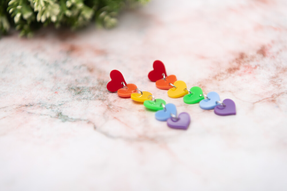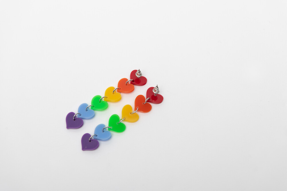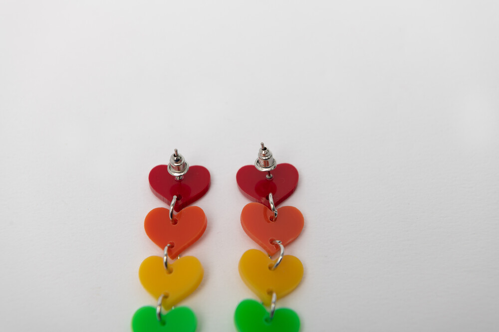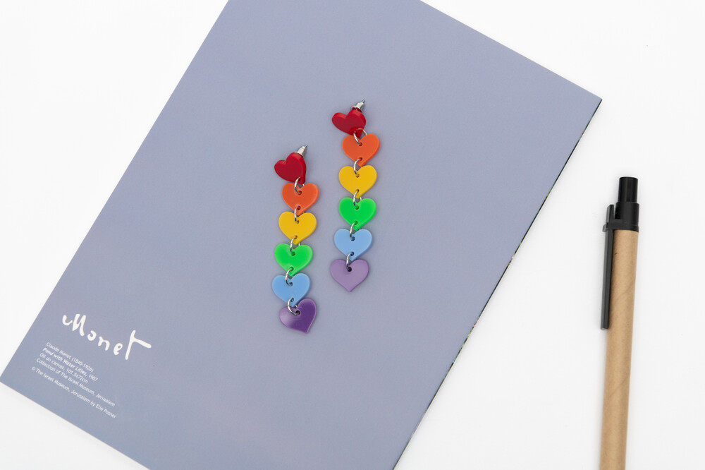 선명한 색감의 무지개색 하트 귀걸이입니다.