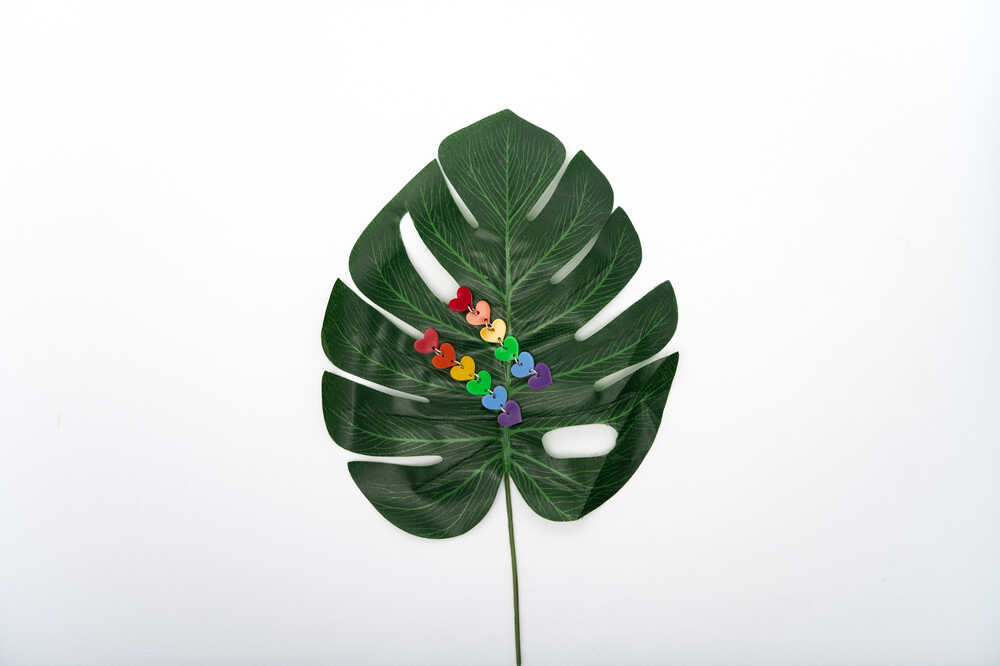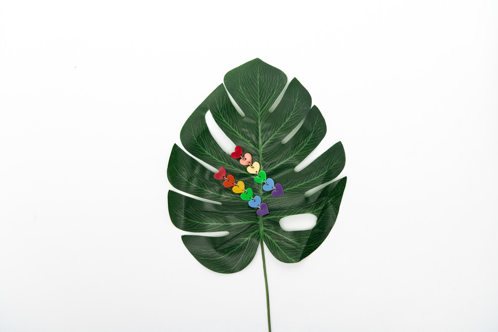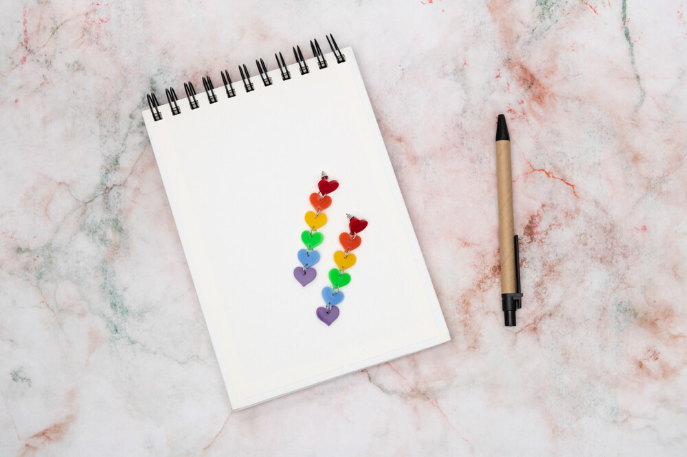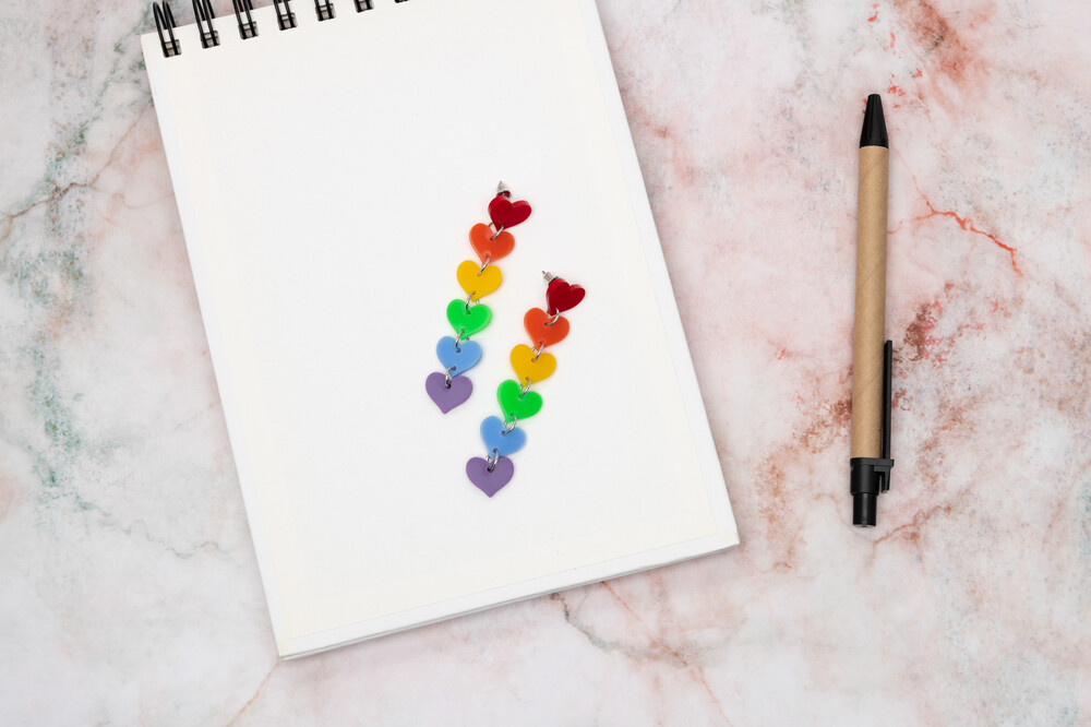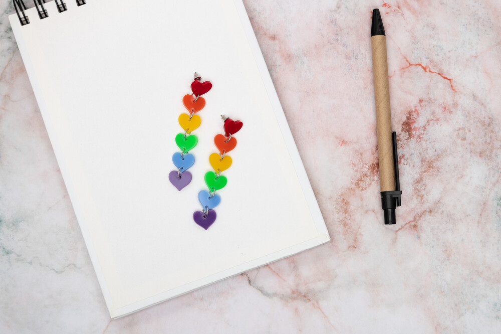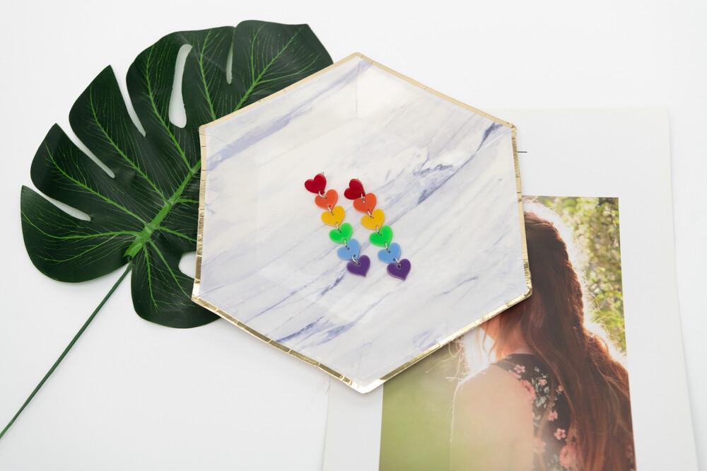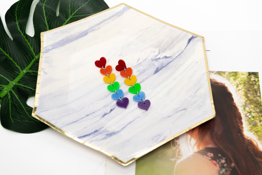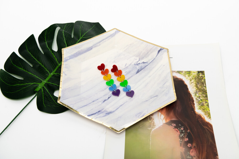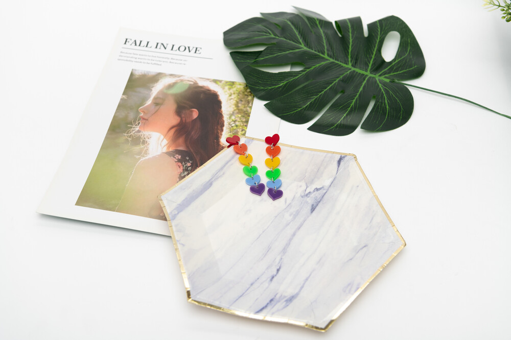 선명한 색감의 무지개색 하트 귀걸이입니다.