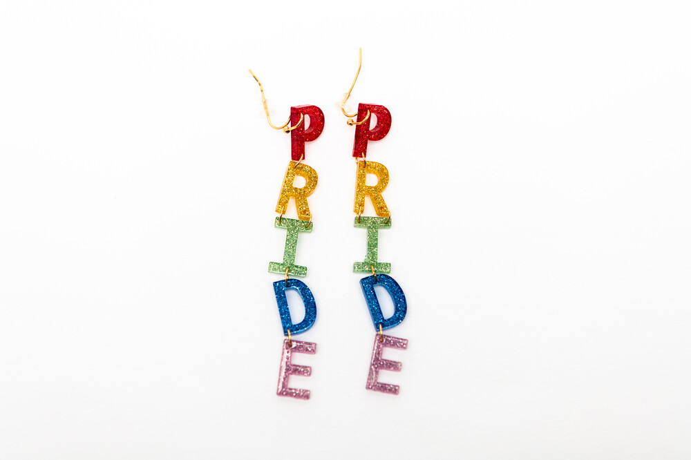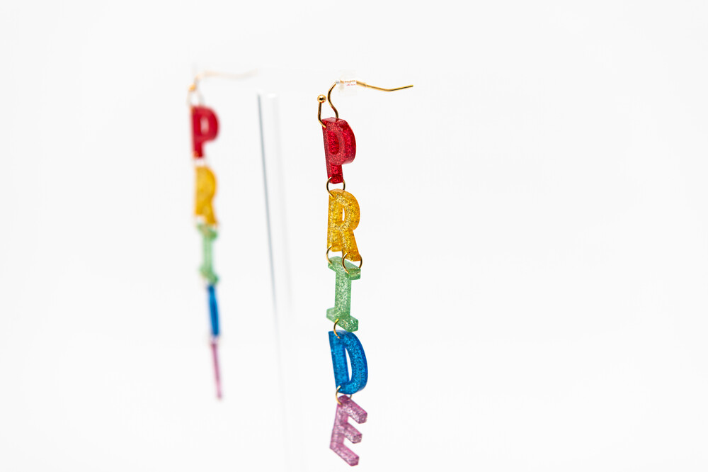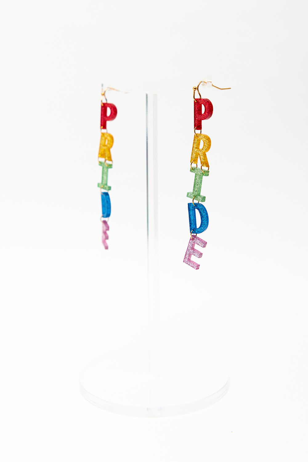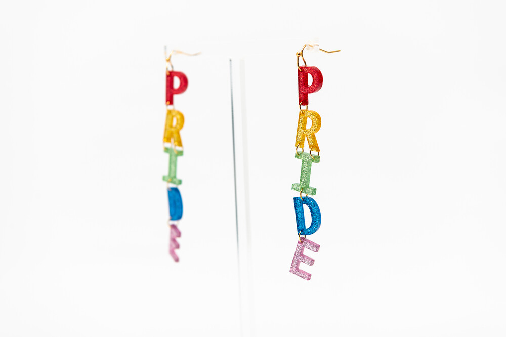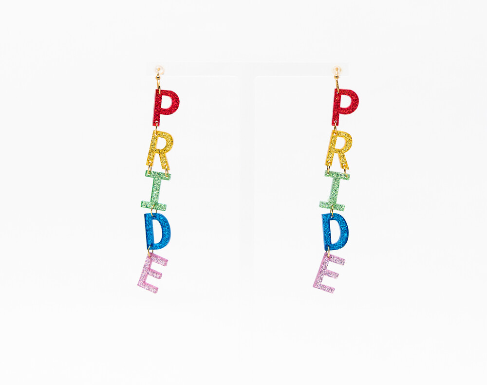 펄 아크릴 PRIDE 스펠링이 이어진 귀걸이입니다.