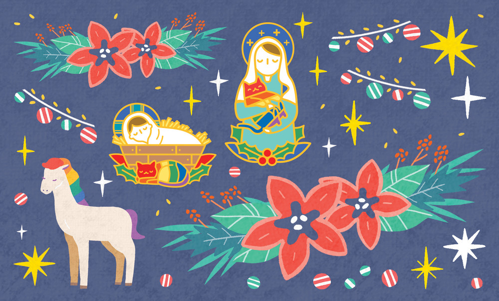 기독교의 큰 축제인 성탄절을 맞아 아주 '퀴어'하고 '기독교'적인 Q-mas 뱃지를 만들었습니다.
