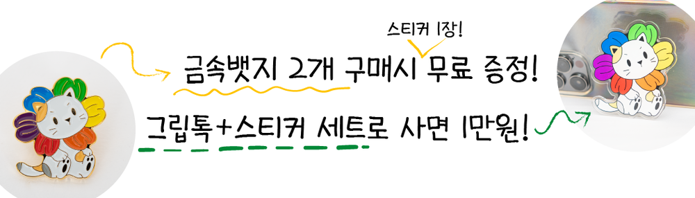 금속뱃지, 그립톡, 스티커까지 총 3가지로 제작되었답니다.