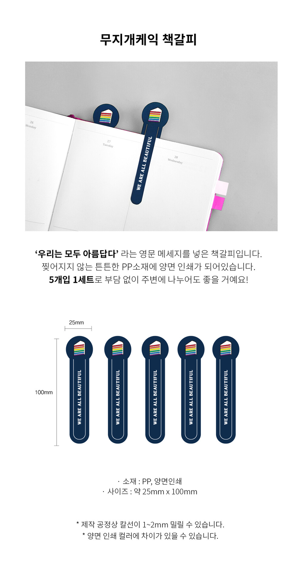 [허니템] 무지개케익 책갈피 5종세트