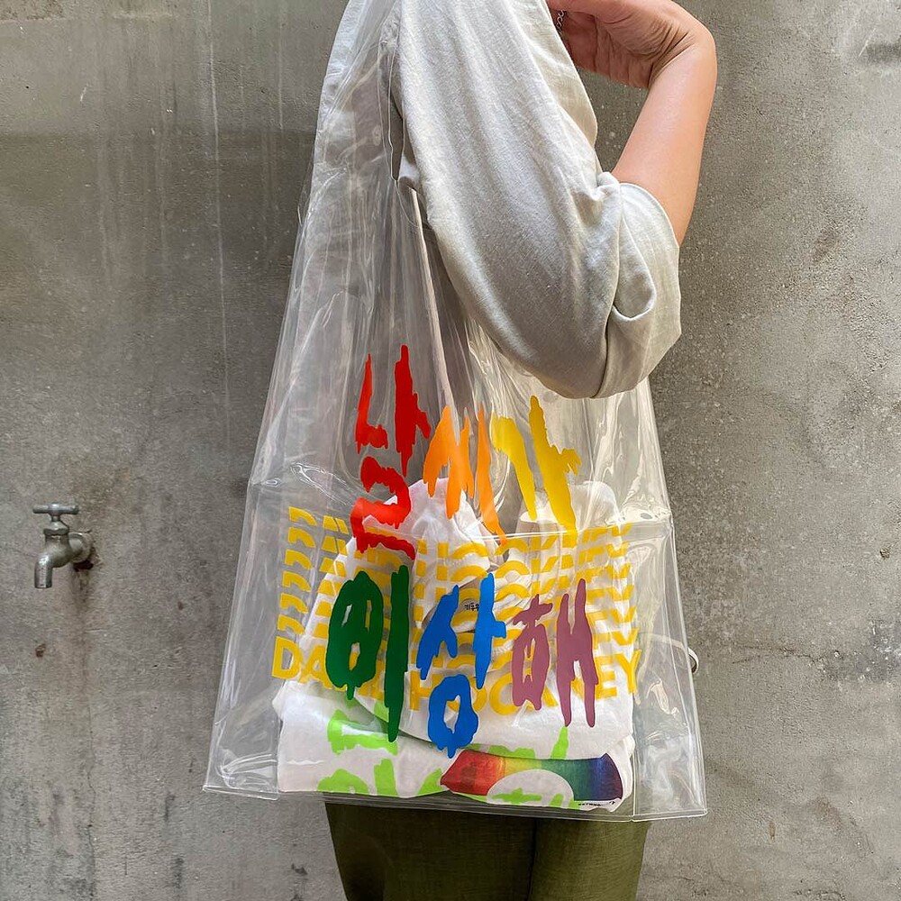 - 투명한 PVC원단이며, 전면 6도의 실크스크린이 특징인 상품