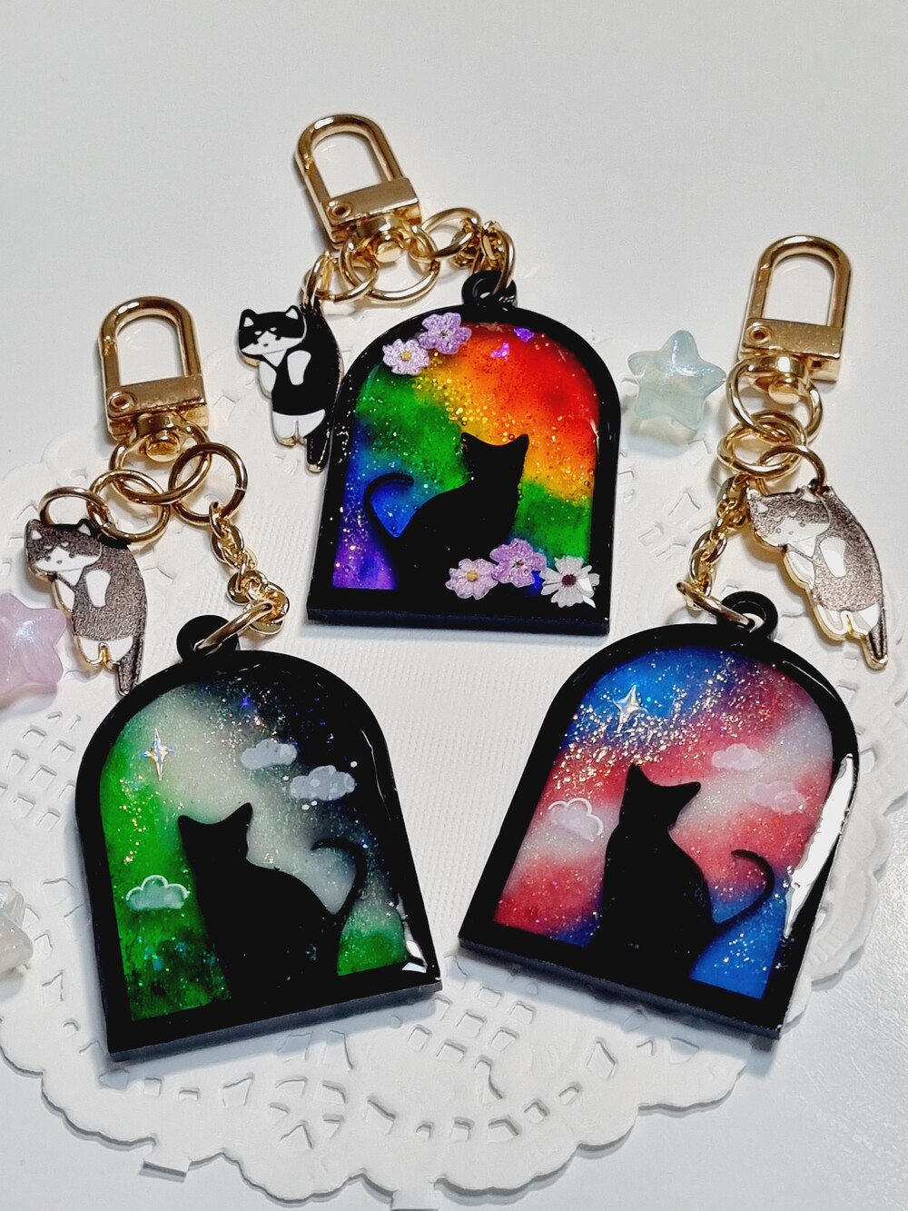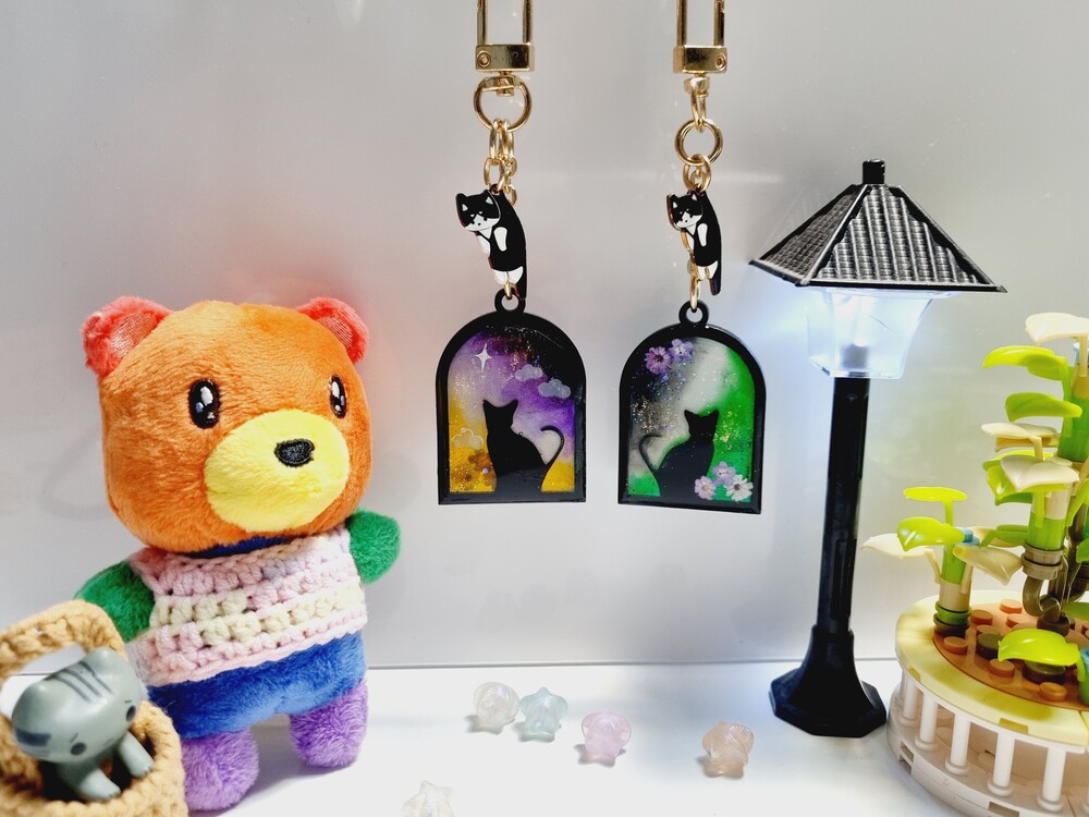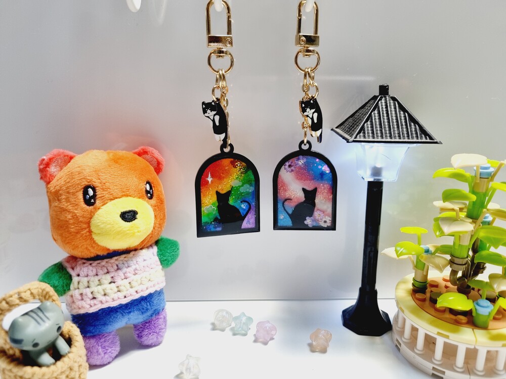 논바이너리 아치 창문 고양이 키링 (오른쪽)