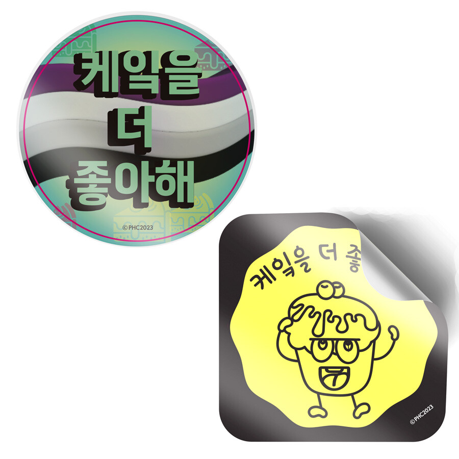'케잌을 더 좋아해' 원형 스티커 2장 (직경 50mm)