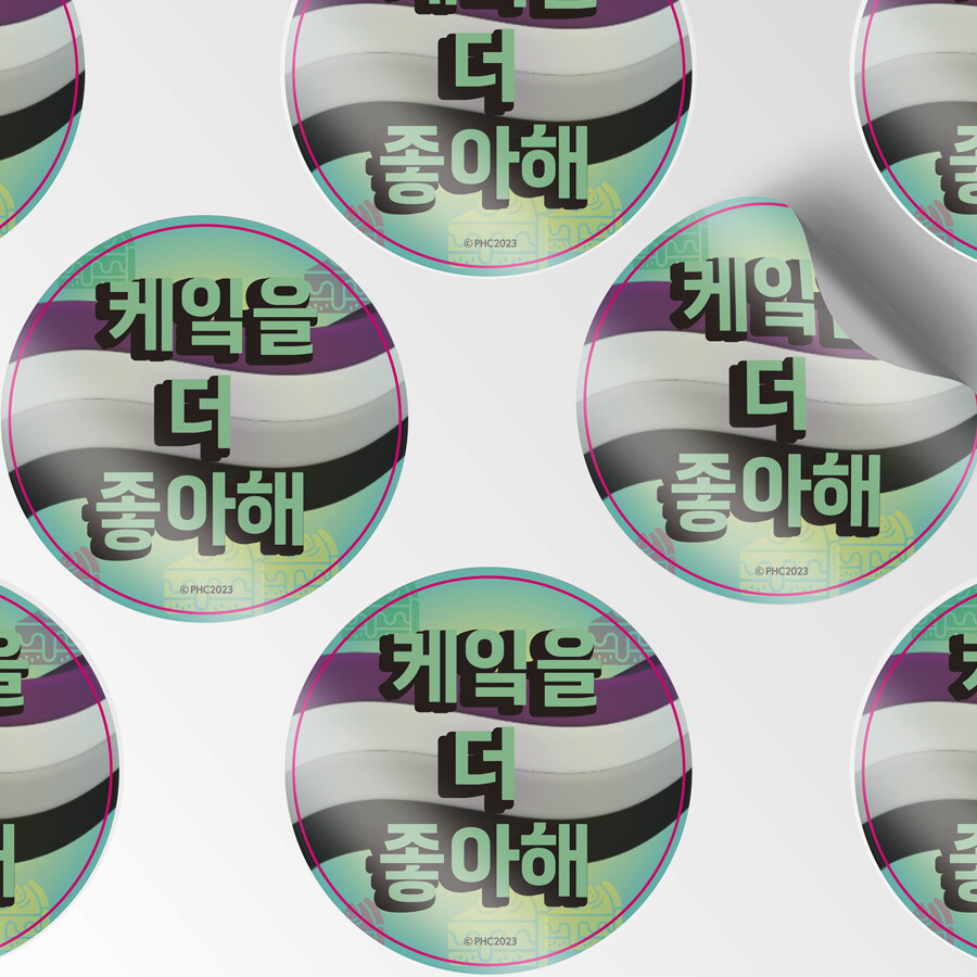 '케잌을 더 좋아해' 원형 스티커 5장직경 50mm