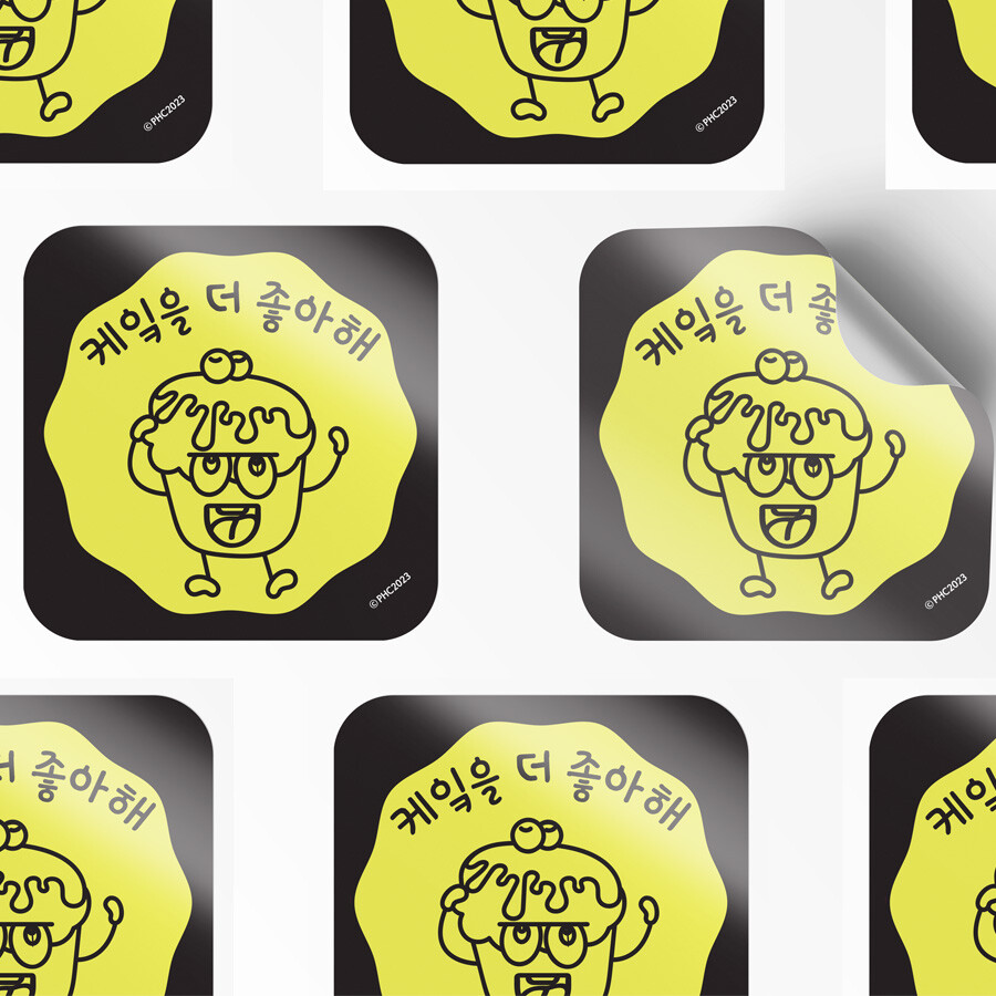 '케잌을 더 좋아해' 정사각형 스티커 5장가로x세로 50x50mm