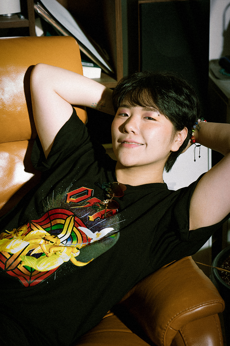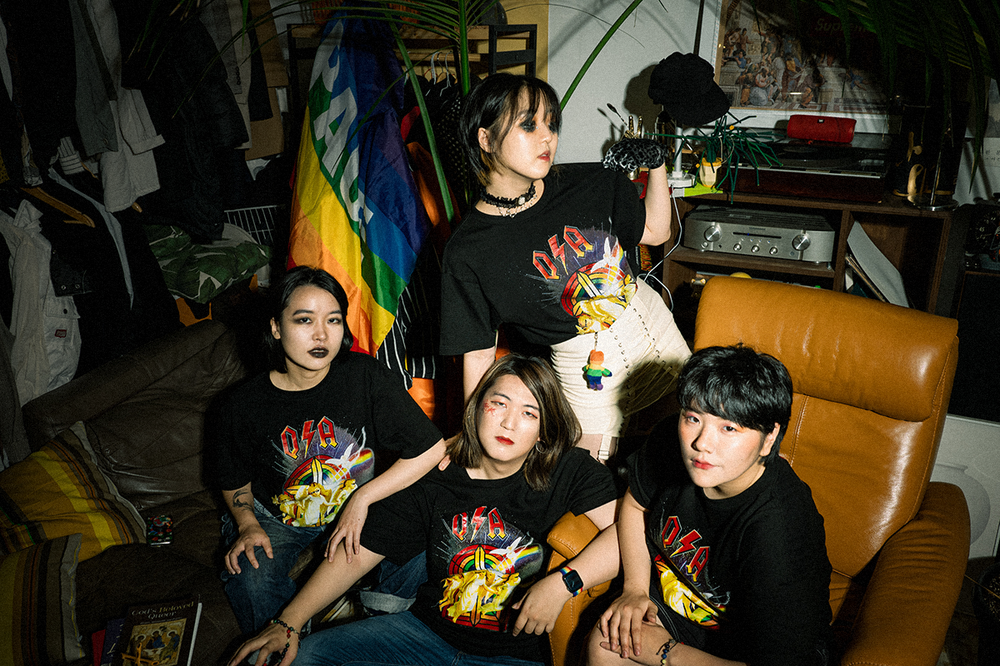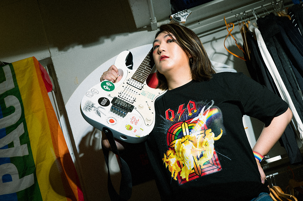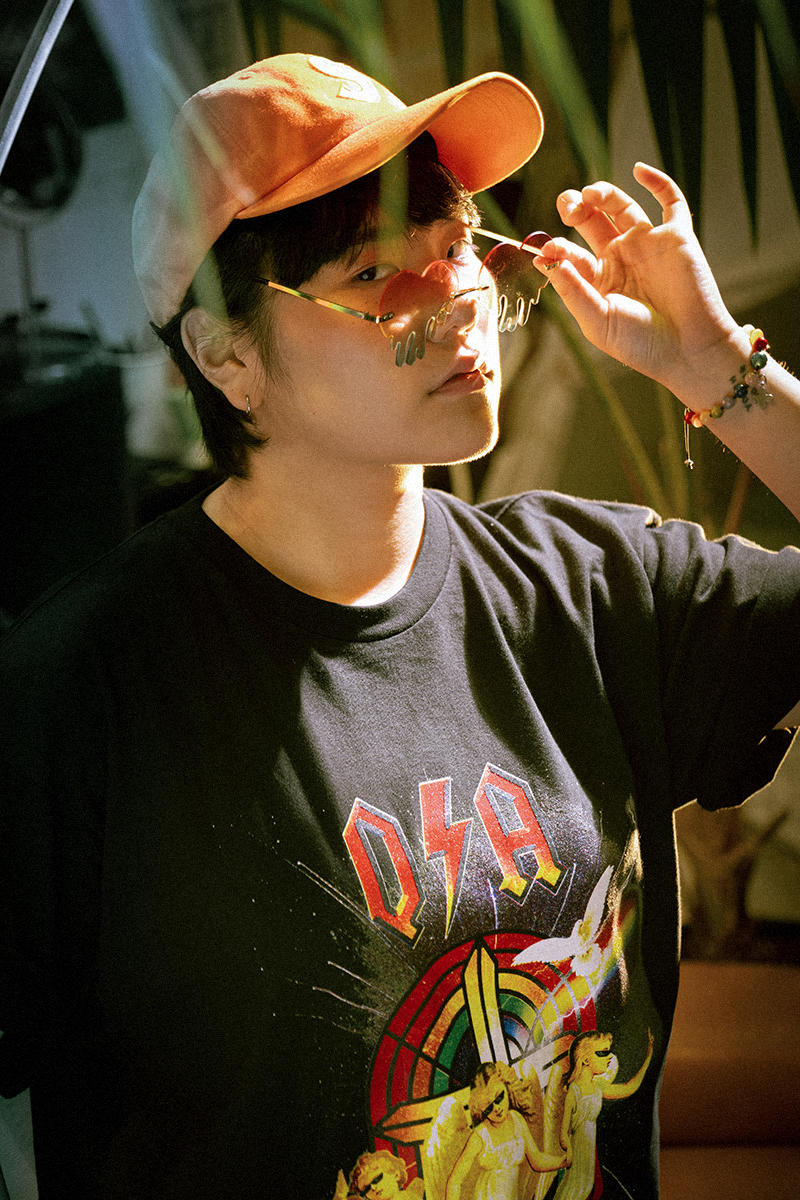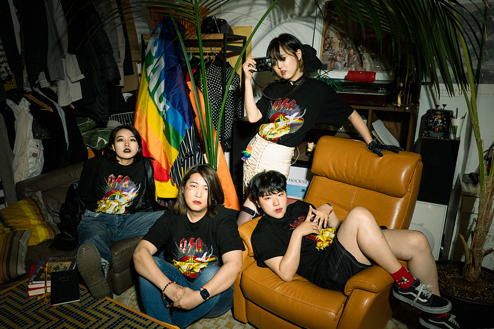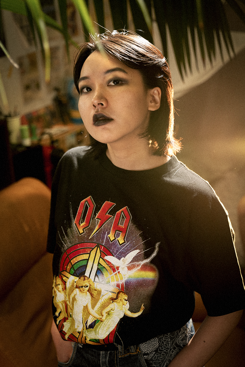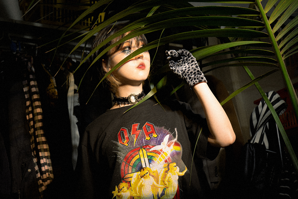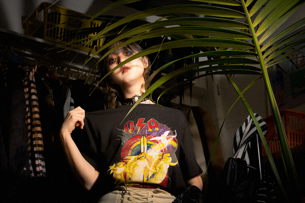 퀴브리엘의 티셔츠는 록 밴드 티셔츠를 모티브로, 기독교의 상징을 재전유한 반항적이고 퀴어한 분위기를 표현했습니다.