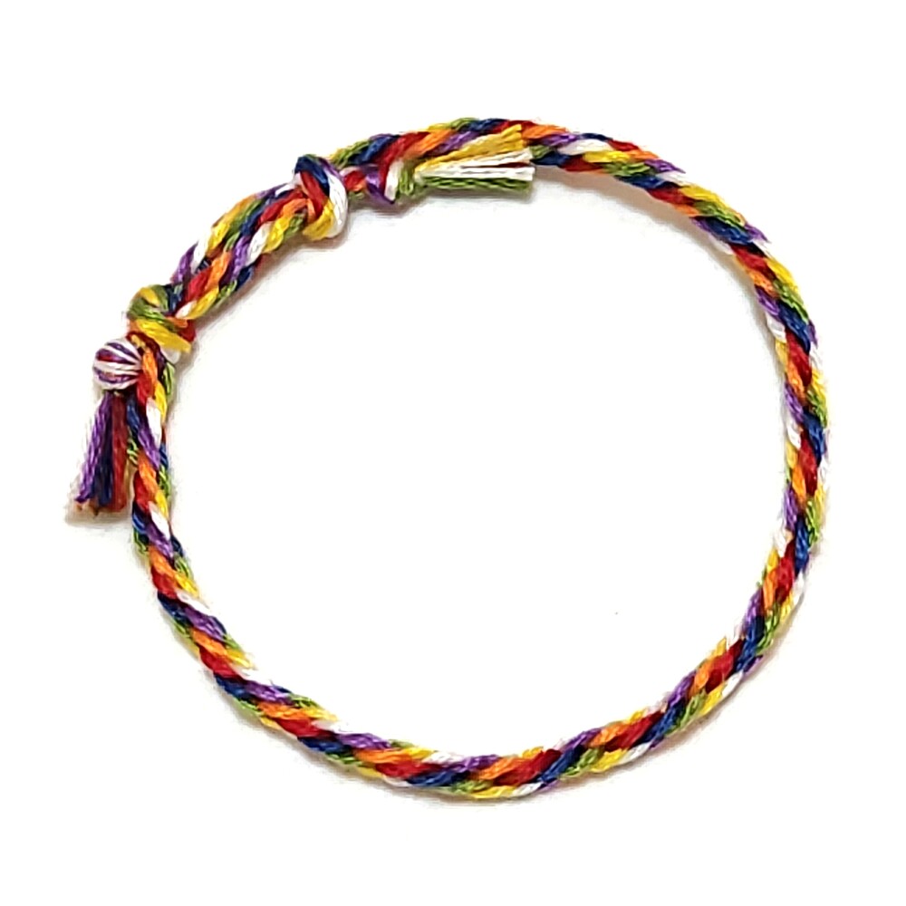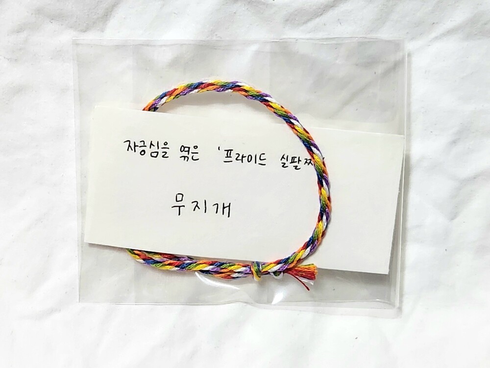 한 땀 한 땀 손으로 직접 엮은 실팔찌입니다.
