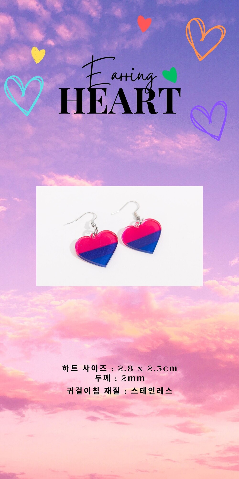라온 아크릴 하트 귀걸이 바이섹슈얼