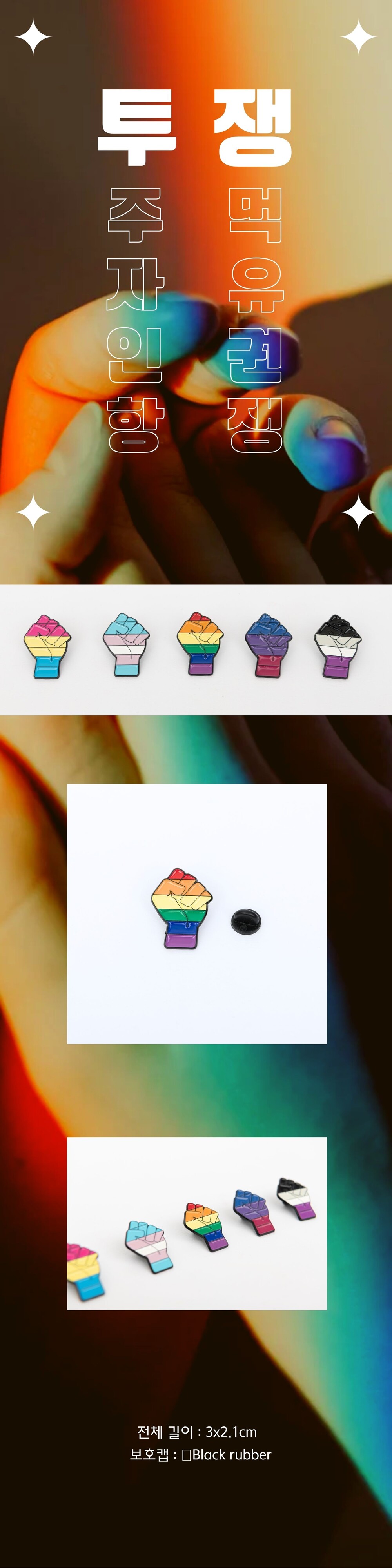 라온 자긍심의 투쟁 뱃지 레인보우