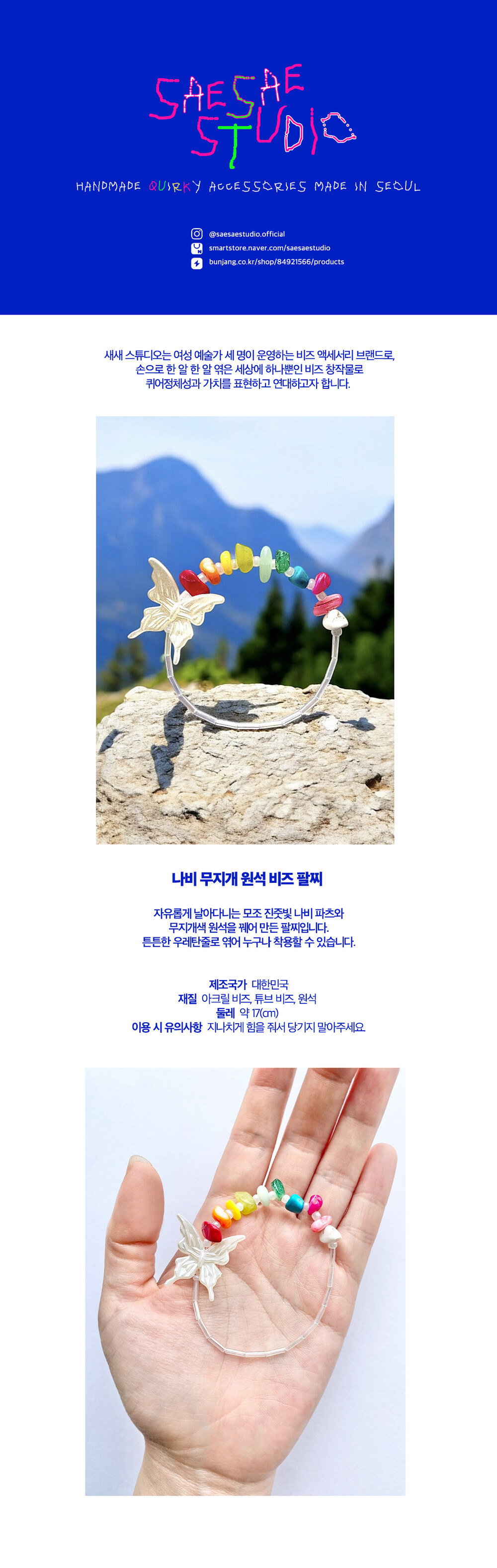 새새스튜디오 나비 무지개 원석 비즈 팔찌
