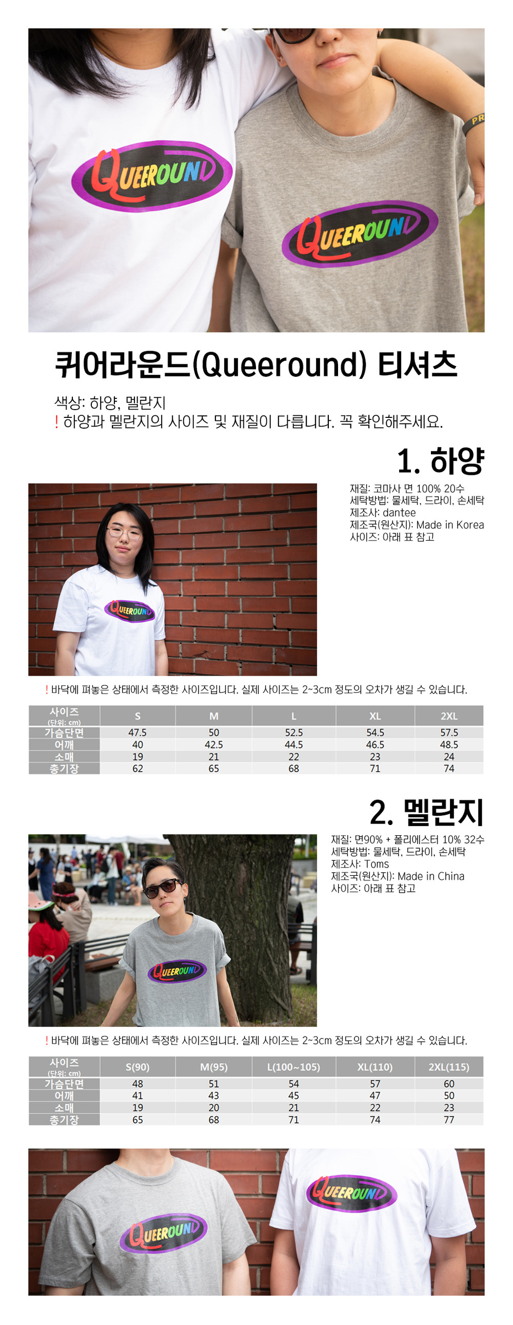 서울퀴어문화축제 사무국 이전으로 인해 8월 27일~9월 2일까지는 티셔츠 배송이 이루어 지지 않습니다.