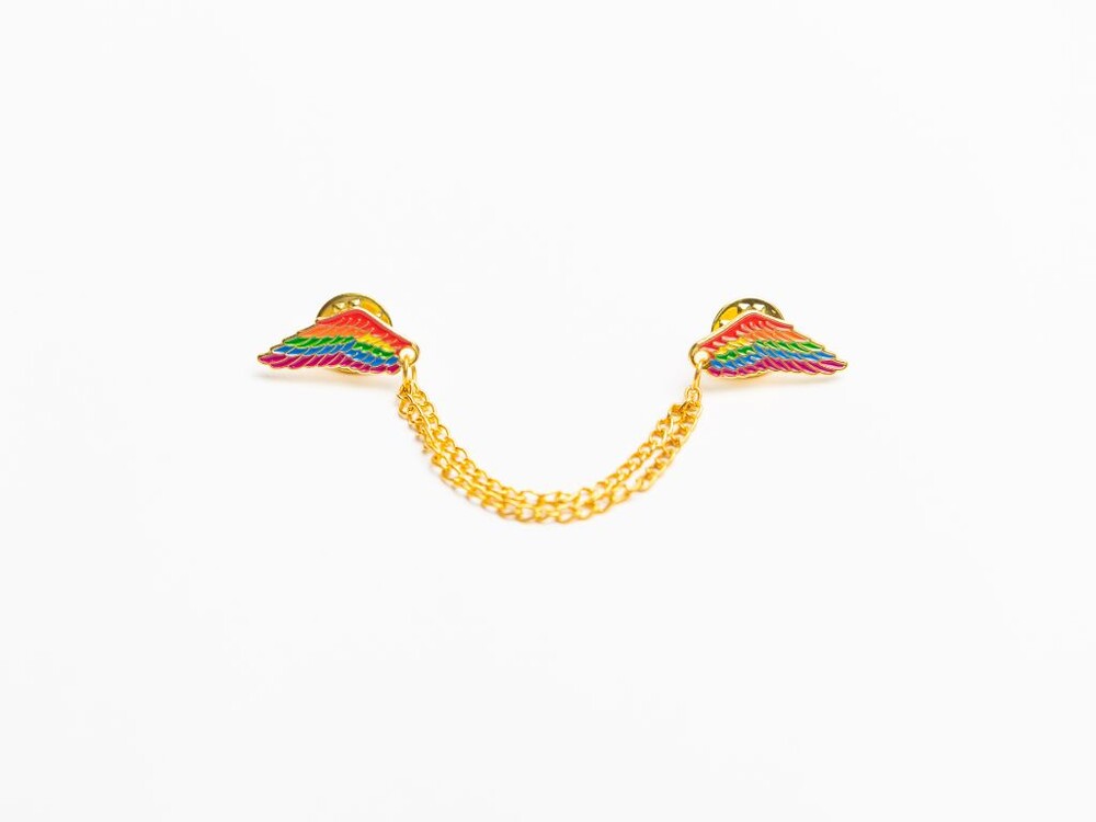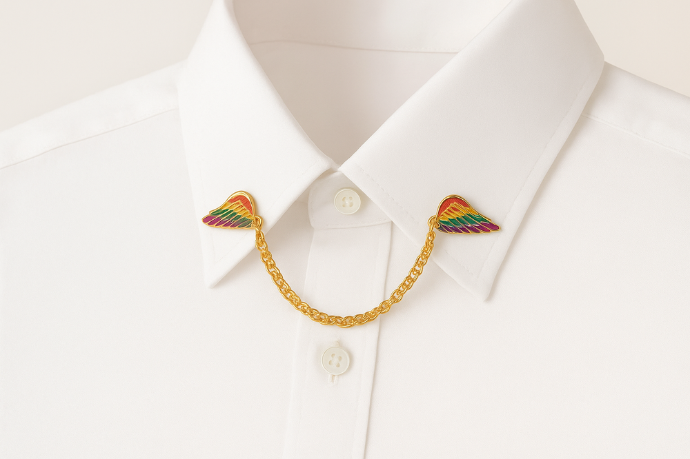 두 개의 날개가 황금빛 체인으로 연결된 특별한 뱃지입니다.